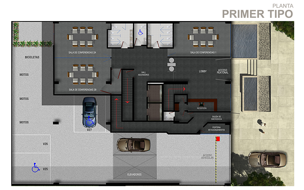- 27 parqueaderos de visitantes con estación de control de acceso.