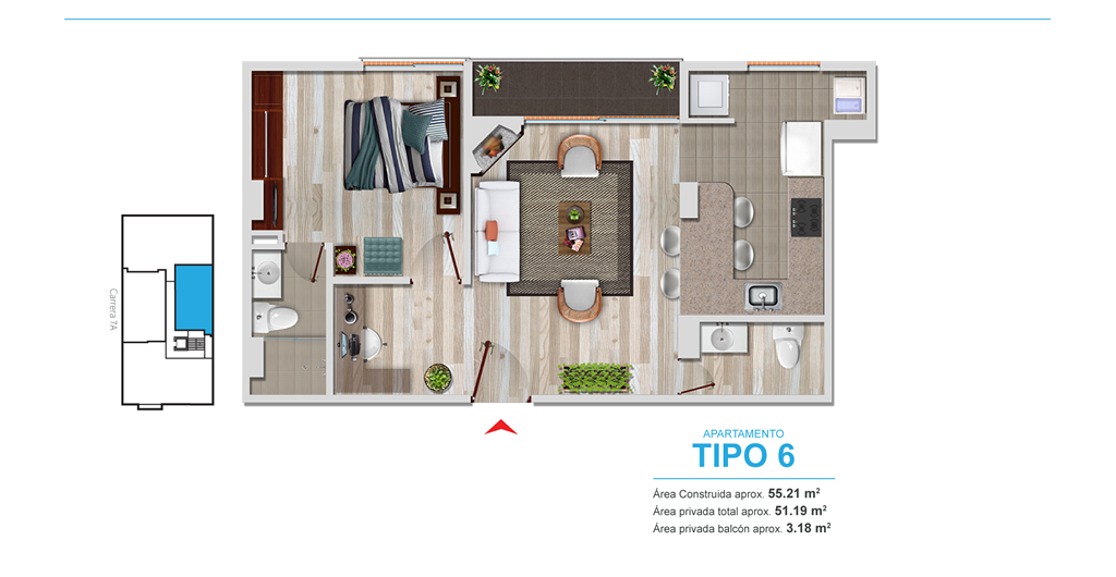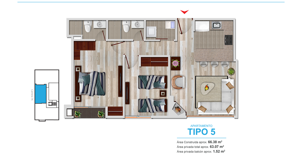 - Altura libre de 2.42 mts. en pisos 2 a 8 y 3.15 en Pent Houses.